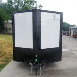 SLE Enclosed Trailers 7×12 Enclosed Trailer White V-Nose Blackout Package 3,500lb Axle Storage