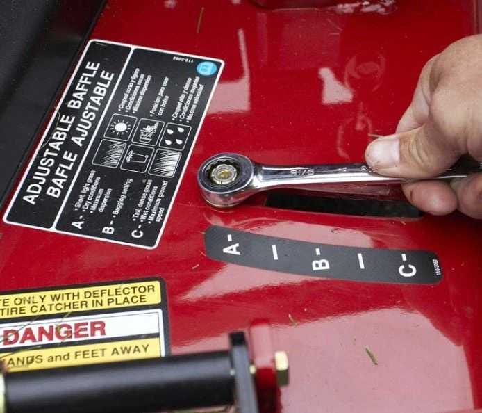 - Patented adjustable baffle allows the operator to achieve maximum cutting performance